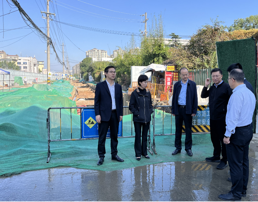 10月20日上午,廣陵區(qū)區(qū)長郎俊帶隊(duì)來到上善公司江都路(萬福路—文昌路)雨污水管道及景觀提升工程三標(biāo)段施工現(xiàn)場,主要督查在建工地?fù)P塵管控情況。區(qū)政府辦、生態(tài)環(huán)境局、住建局、城管局、交通局、商務(wù)局主要負(fù)責(zé)人及上善公司總經(jīng)理付元寧陪同參加督察。